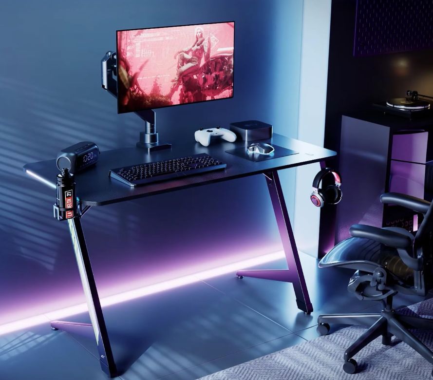๐ฅ Escritorio Gamer NanoRS RS102 120x60 cm Negro Iluminaciรณn LED RGB 18 Modos USB, Adaptador ARGB Soporte Casco, Portavasos, pies Antideslizantes. #Amazon