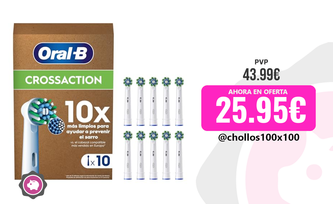 ✅ Oral-B Pro CrossAction Cabezales De Recambio ORIGINALES para Cepillo de Dientes Eléctrico Oral-B Pro, Pack de 10 Recambios Con Indicador De Uso, Blanco (Tamaño Buzón)