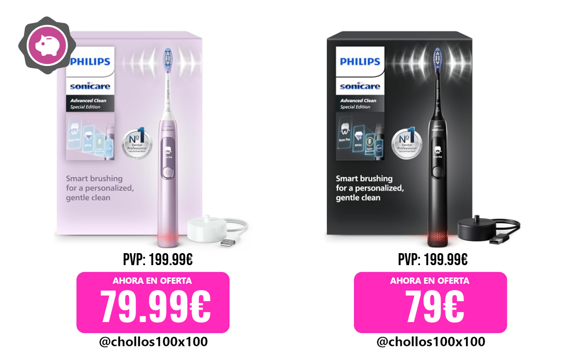✅ Philips Sonicare AdvancedClean Limited Edition, Cepillo de dientes eléctrico - Smart Screen, sensor de presión, recambio del cabezal de cepillado, 5 modos de cepillado y SmarTimer, rosa, HX3792/12