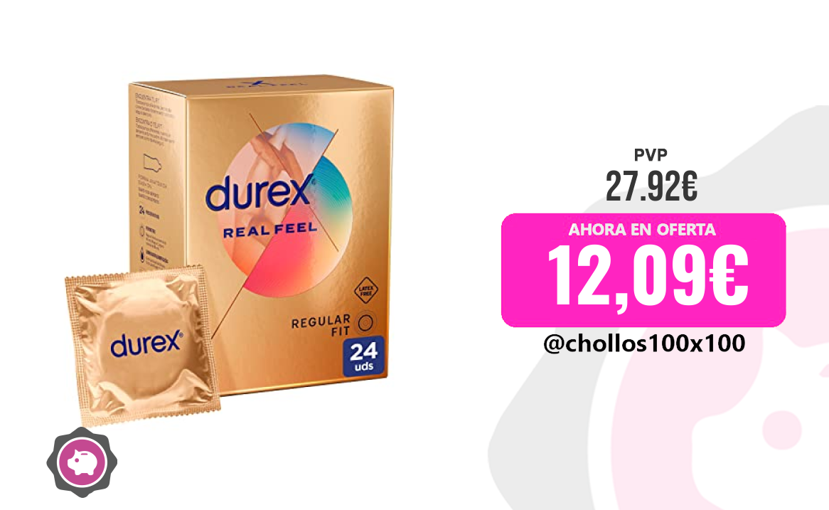 ✅ Durex Preservativos Real Feel, Extra lubricados, Sin Látex, Forma Easy-On, 24 condones