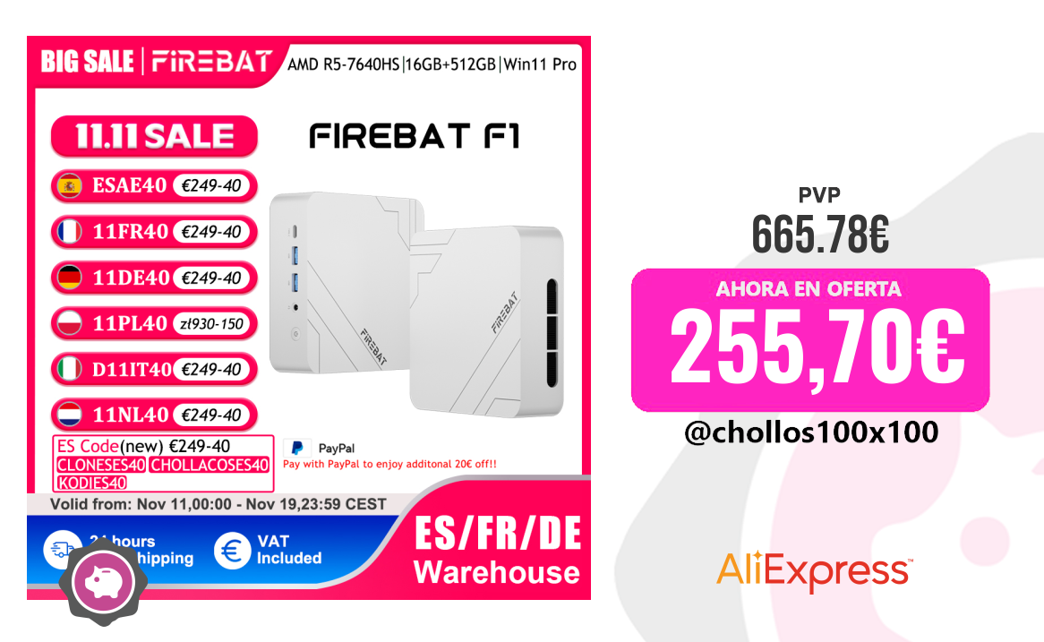✨ 🔥 El Firebat F1 Mini PC cuenta con un potente AMD Ryzen 5 7640HS, 16GB DDR5 y 512GB SSD. Ideal para juegos con Windows 11, Wi-Fi 6 y BT5.2. ¡Compacto y eficiente! 💻🎮