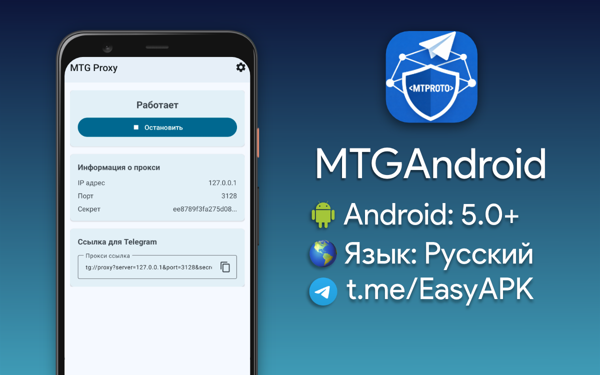 MTGAndroid — удобное приложение от создателя ByeByeDPI. Позволяет запустить локальный MTProto Proxy для Telegram. Помогает обходить замедление. #apps @EasyAPK