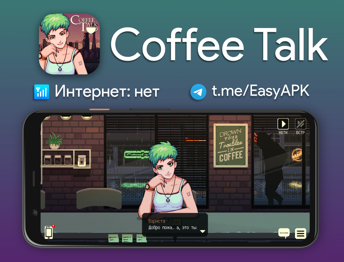 Coffee Talk — это игра о том, как выслушивать проблемы людей и помогать им, подавая горячий напиток из имеющихся у вас ингредиентов. #games @EasyAPK