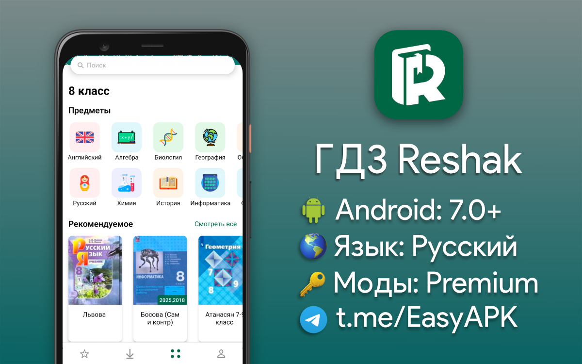 ГДЗ Reshak — приложение с готовыми домашними заданиями для более чем 200 школьных учебников. #apps @EasyAPK