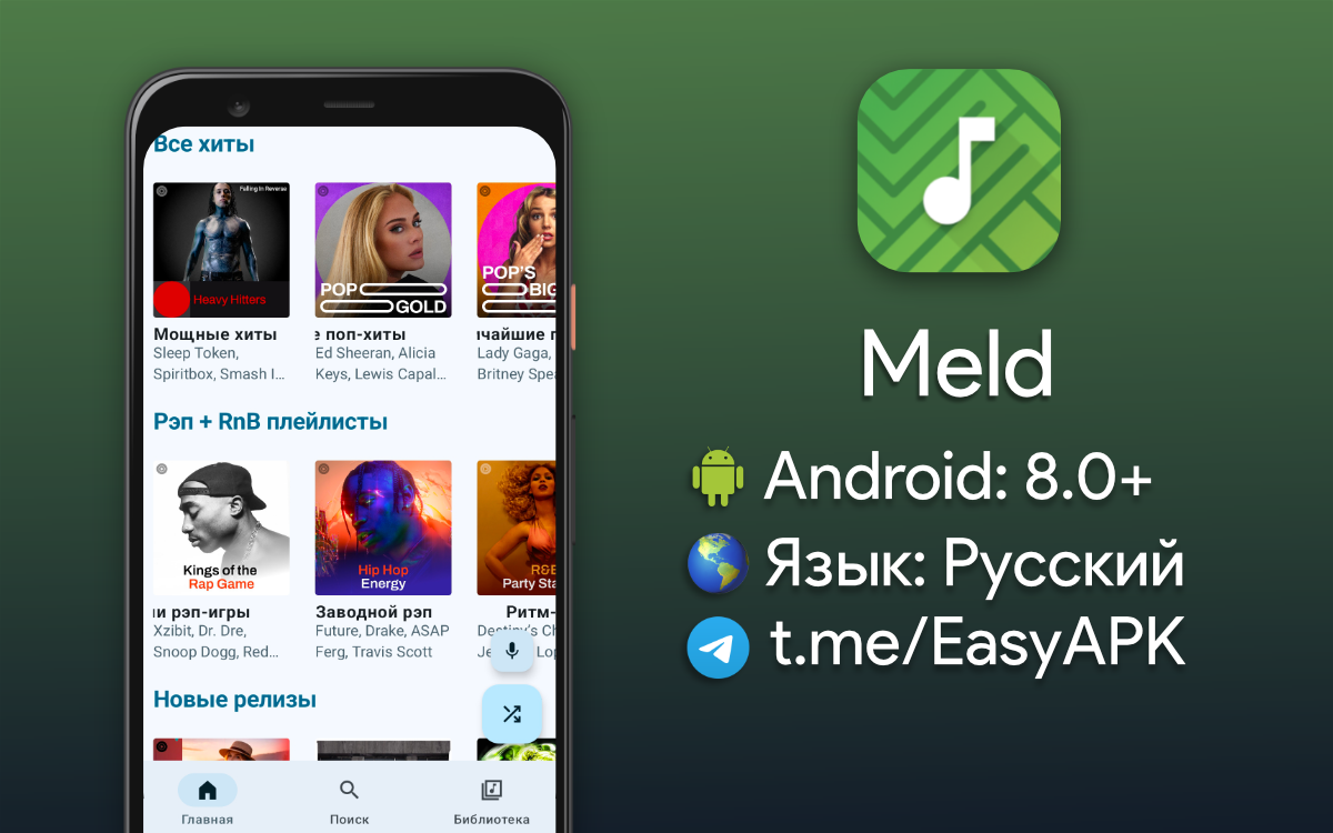 Meld — это удобный клиент YouTube Music с интеграцией Spotify. Можно войти в свой аккаунт Spotify и слушать музыку без ограничений. #apps @EasyAPK