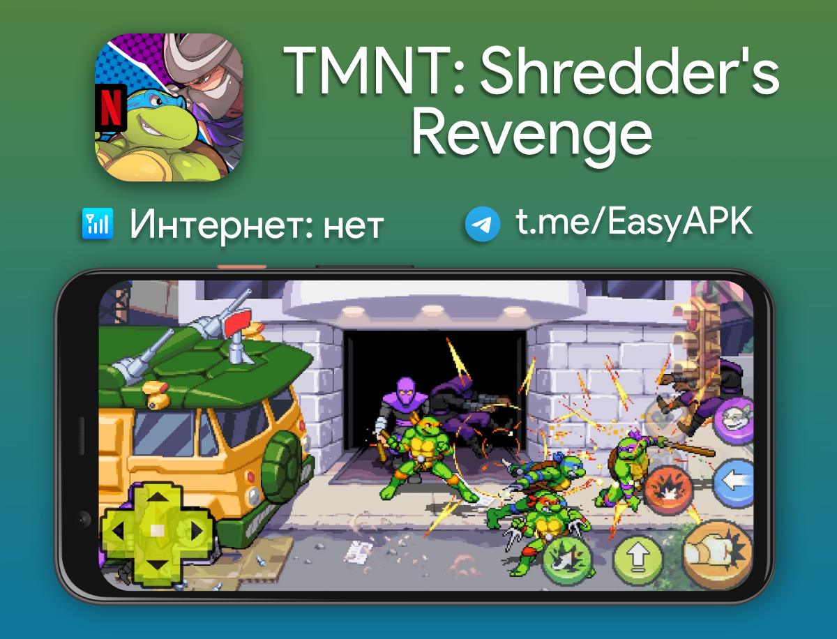 TMNT Shredders Revenge — сражайтесь вместе с Леонардо, Рафаэлем, Донателло и Микеланджело, а также другими персонажами в этом ретро-файтинге в стиле 80-х. #games @EasyAPK