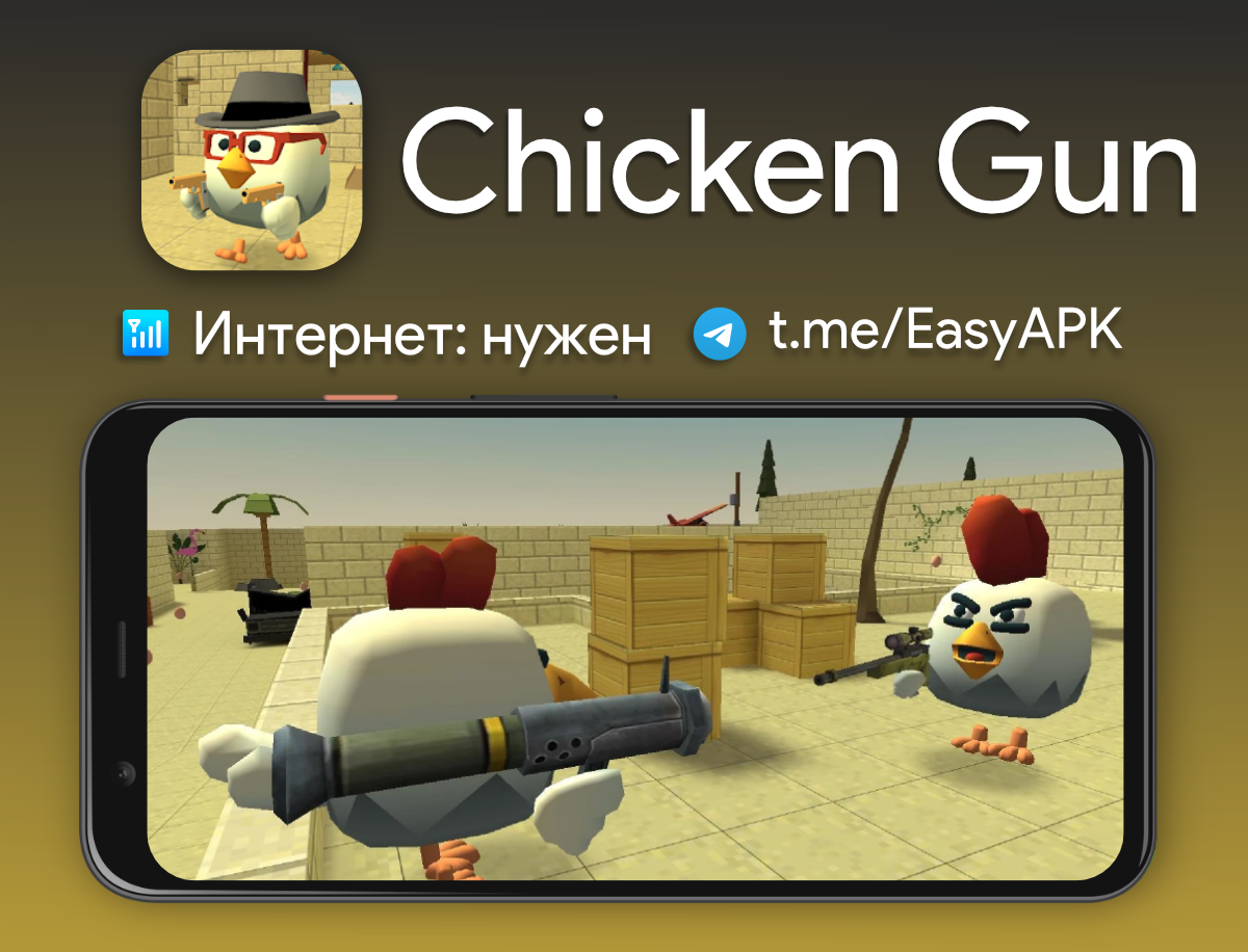 Chicken Gun — стрелялка по сети с двумя режимами - 5v5 и против всех. Своего петуха можно круто прокачать: оружие, клюв, тапки и кепки. Кидайся взрывными яйцами, дымовыми гранатами и устрой яростную бойню. #games @EasyAPK