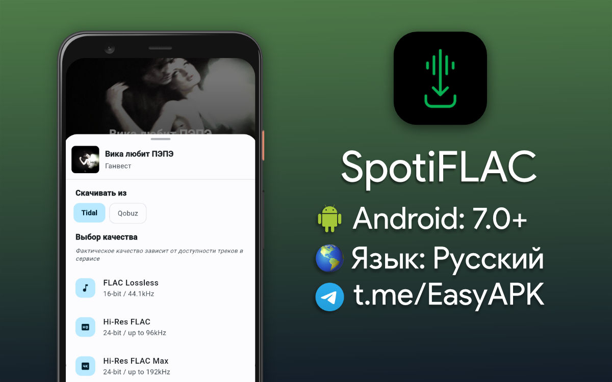 SpotiFLAC — приложение для удобного скачивания музыки в высоком качестве из сервисов Tidal, Qobuz и Amazon Music. #apps @EasyAPK