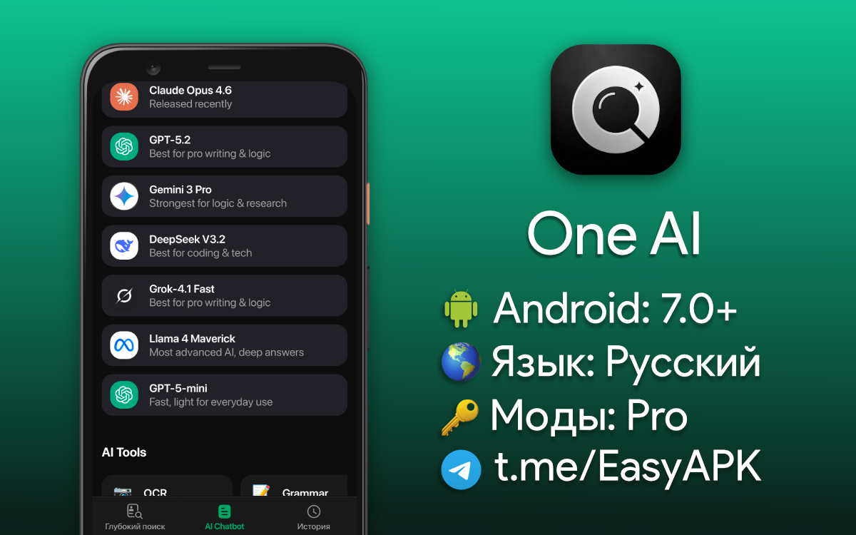 One AI — отличный чат-бот с доступом к новейшим нейросетям Gemini, GPT, DeepSeek. #apps @EasyAPK