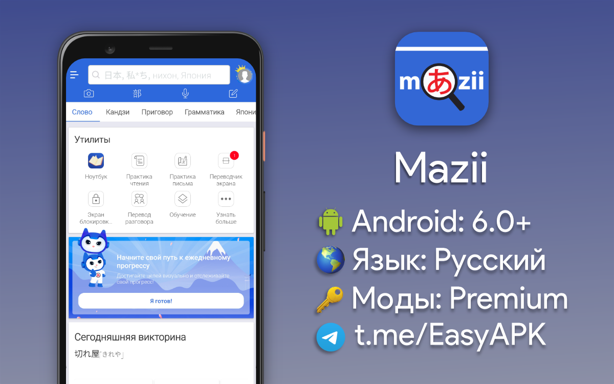 Mazii — приложение для изучения японского языка с полным набором хираганы и катаканы, практикой произношения, практикой письма на японском языке, большим количеством тем по лексике и исправлением грамматики, подготовкой к экзамену JLPT. #apps @EasyAPK
