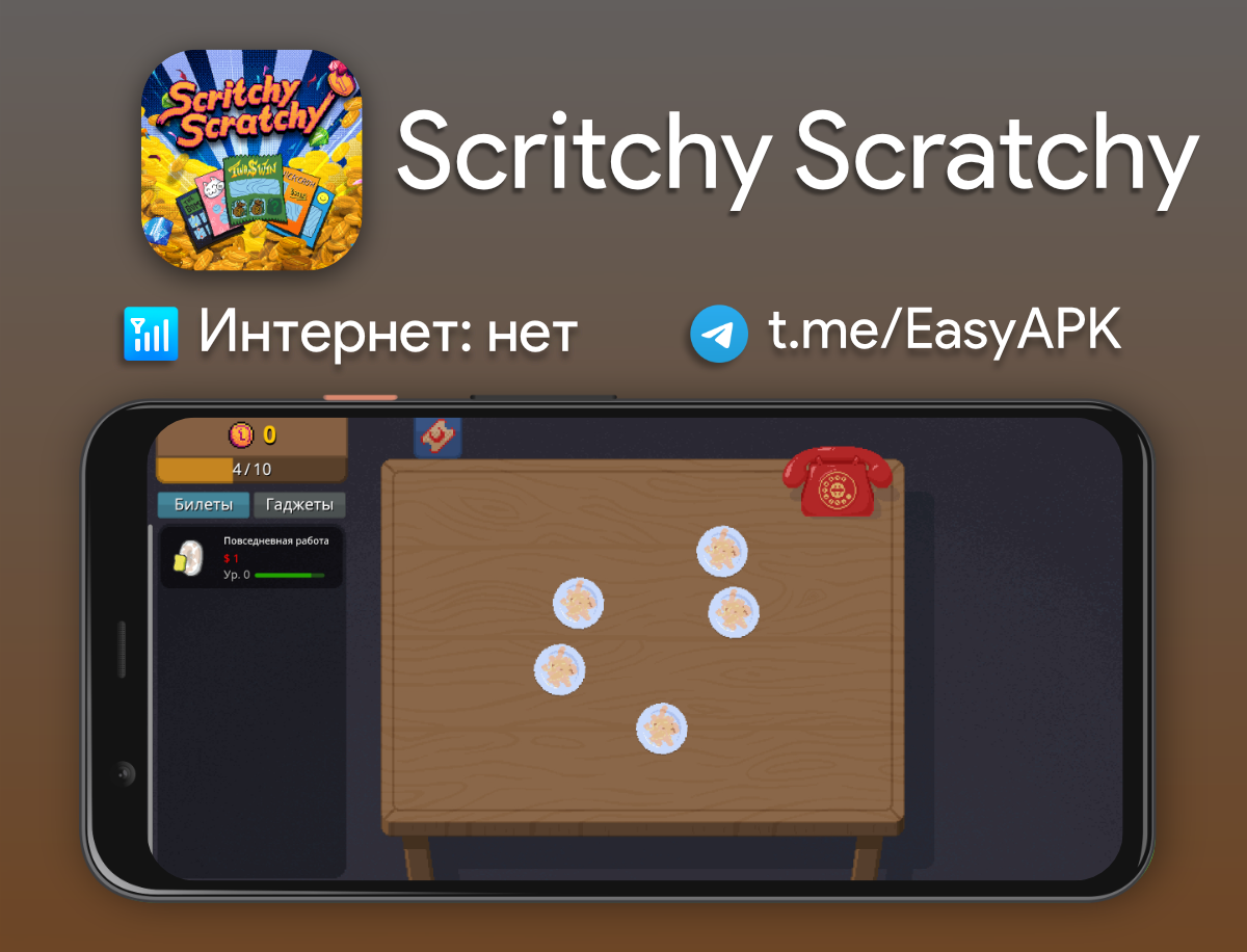 Scritchy Scratchy — погрузитесь в постоянно пополняющуюся коллекцию скретч-карт, каждая из которых имеет свои особенности, сюрпризы и иногда недостатки. Разрывайте билеты, находите редкие символы, управляйте своей удачей и гоняйтесь за невероятными выигрышами. #games @EasyAPK
