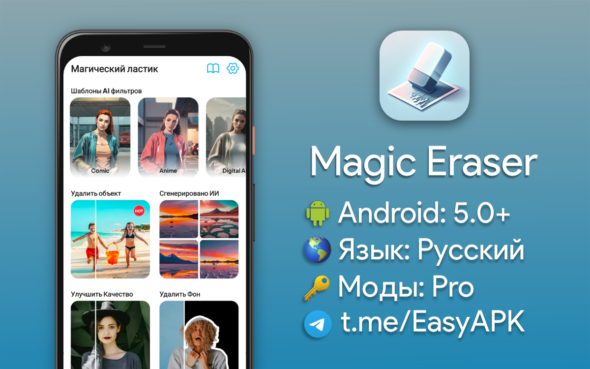 Magic Eraser — хорошее приложение для редактирования фотографий. Есть умное удаление фона и крутые фильтры. Можно генерировать картинки с помощью ИИ. #apps @EasyAPK