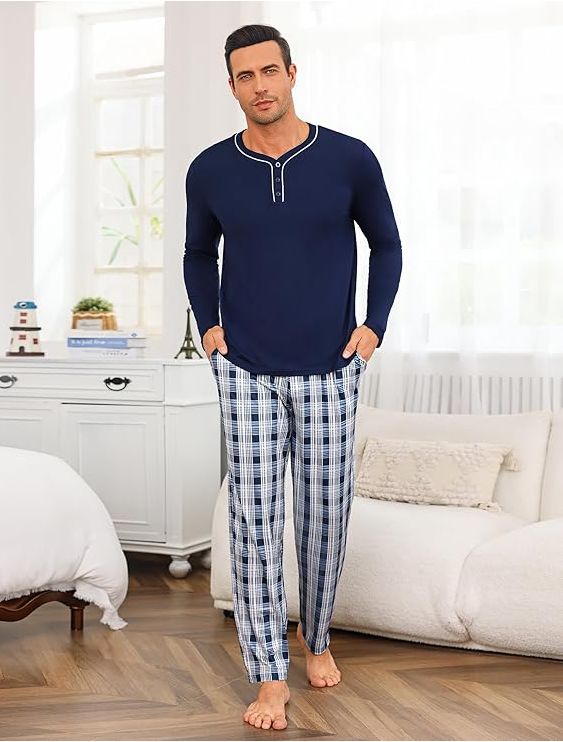 π ACABA HOYβοΈPijama hombre invierno de algodΓ³n manga larga a cuadros. #Amazon