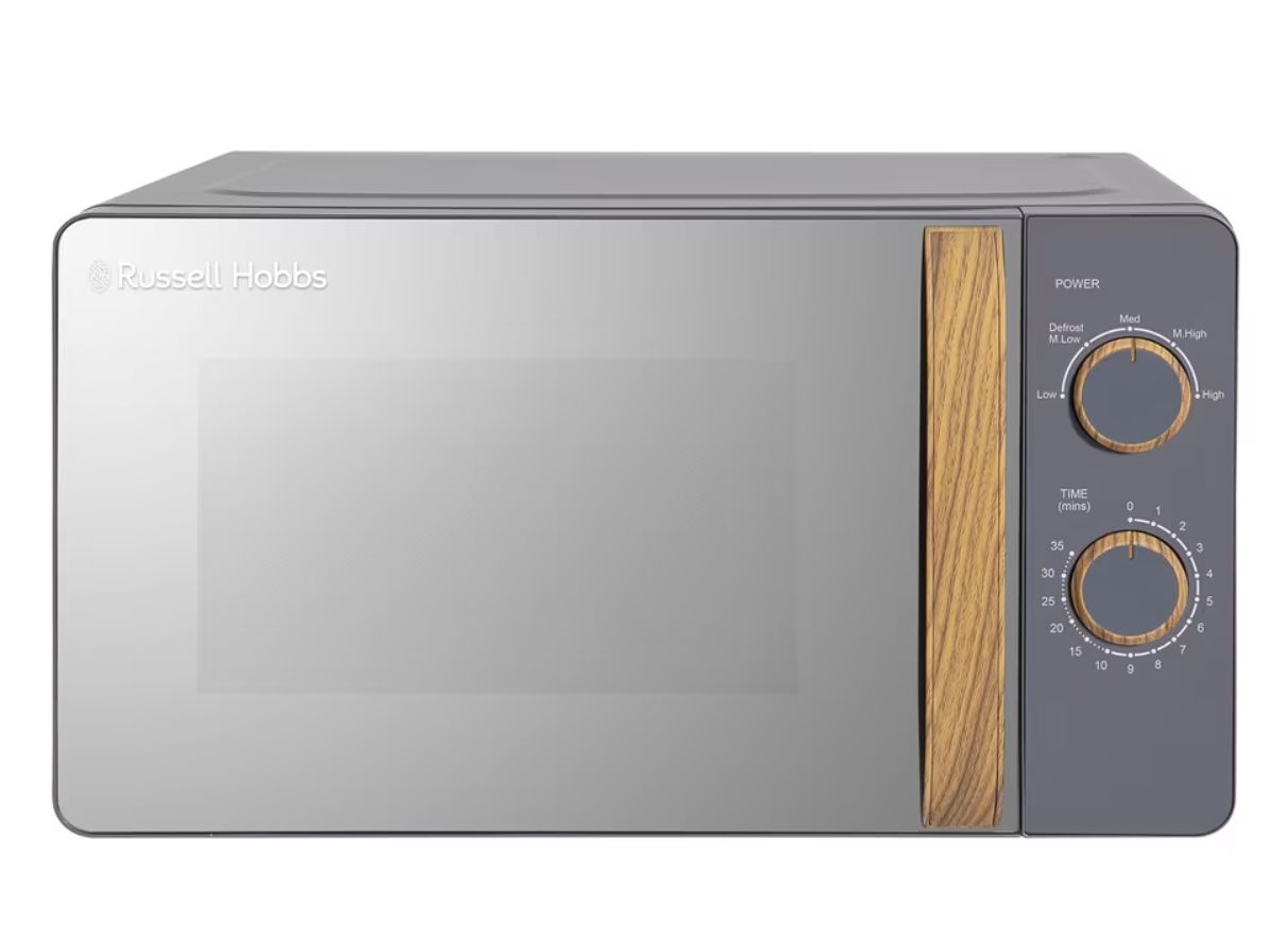 π Russell Hobbs Microondas manual compacto de 17 l y 700 W, 5 niveles de potencia, maneta y diales con efecto madera. #Amazon