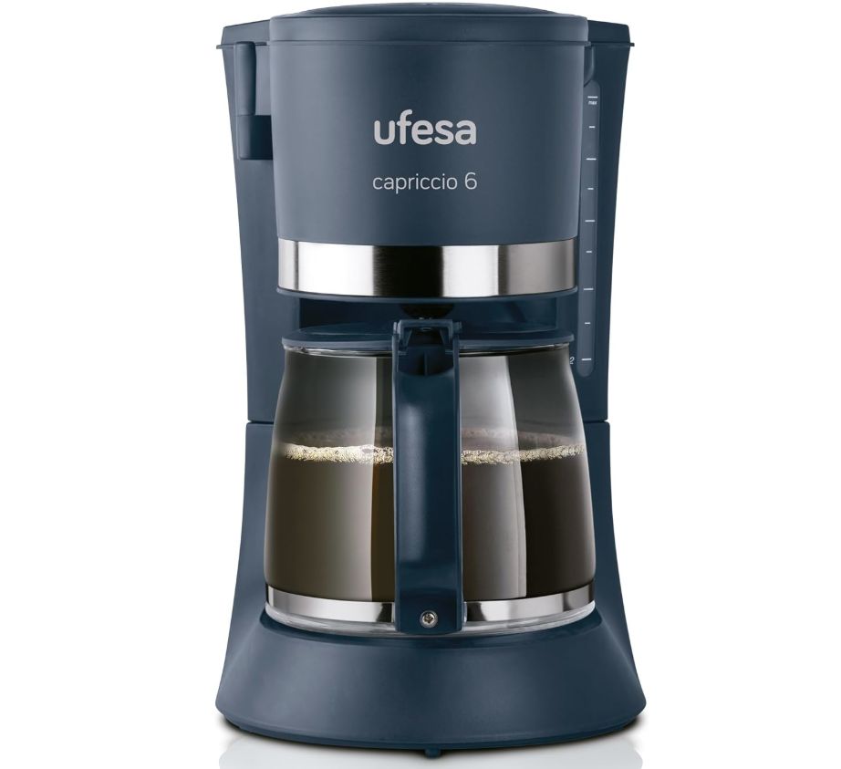 π Ufesa Capriccio Cafetera de Goteo, 6 Tazas, 600W, Jarra 0.6L, Filtro Permanente, Placa Calefactora Antiadherente, Sistema Antigoteo. #Amazon