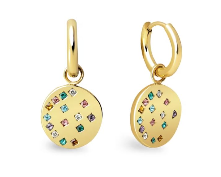 π Singularu Pendientes Aro Bling. Colgante de Acero Inoxidable con BaΓ±o en Oro de 18Kt. Cierre Congo/Click. #Amazon