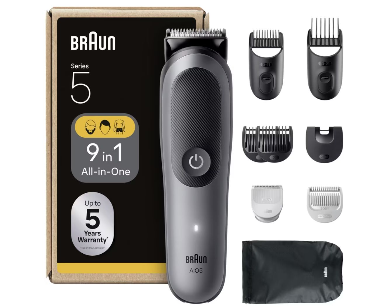 π Braun Recortadora Todo en Uno Series 5, AIO5545, Kit de Styling 9 en1 Para Barba, Pelo, Orejas, etc,120 Min. #Amazon