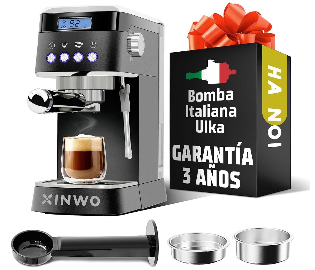 ๐ Cafetera Retro de Acero Inoxidable,1.2L, 20 Bar, Vaporizador/Espumador, Portafiltros Doble, Automรกtica con Accesorios. #Amazon