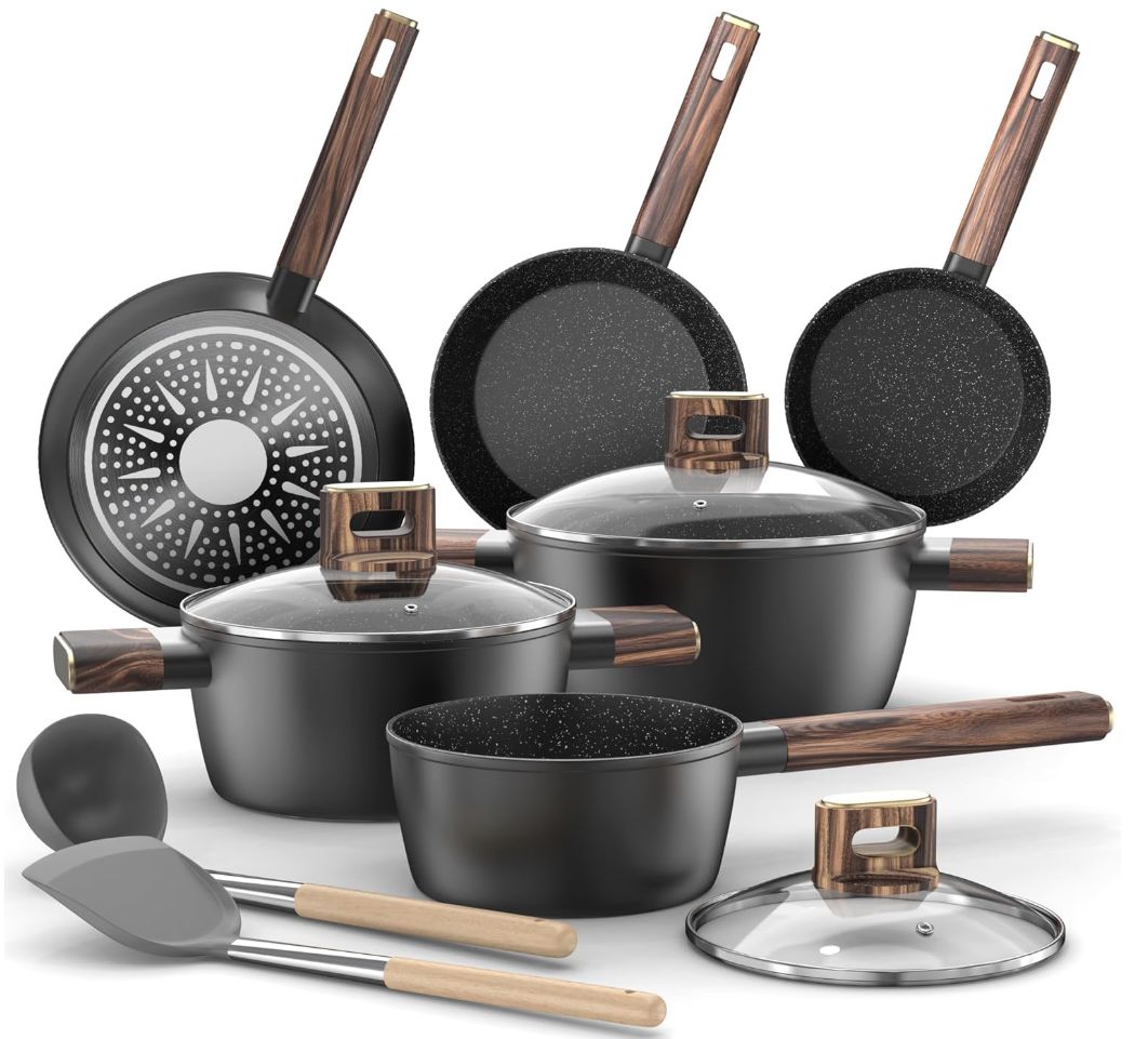 ๐ Baterรญa de Cocina - 11Piezas Juego de Ollas y Sartenes Aluminio Antiadherente, Sartenes de 20cm y 28cm, Wok de 24cm, Cacerola de 16/20/24 cm con Tapas. #Amazon