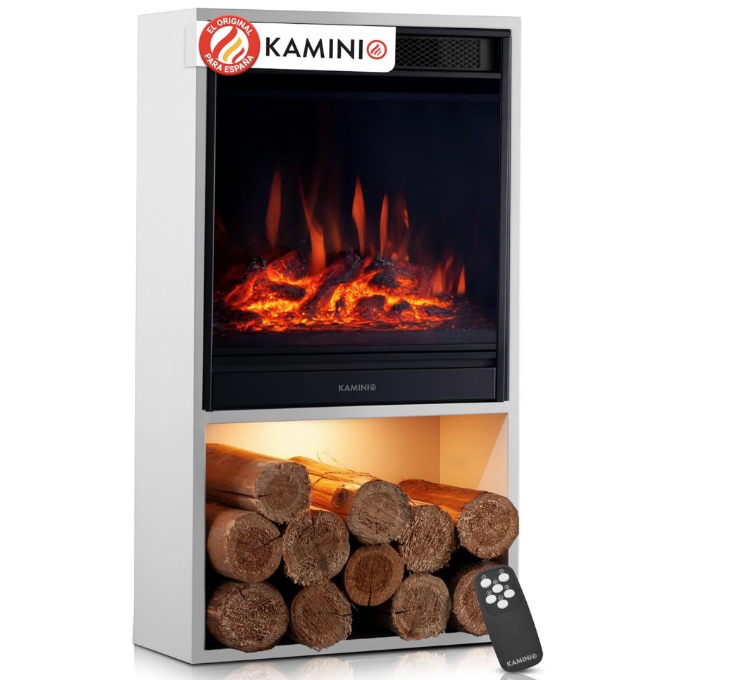 ๐ Chimenea elรฉctrica Hugo, Estufa de Calefacciรณn, Efecto Llama 3D, Luz Ambiental LED, Compartimento de Madera, Control Remoto. #Amazon