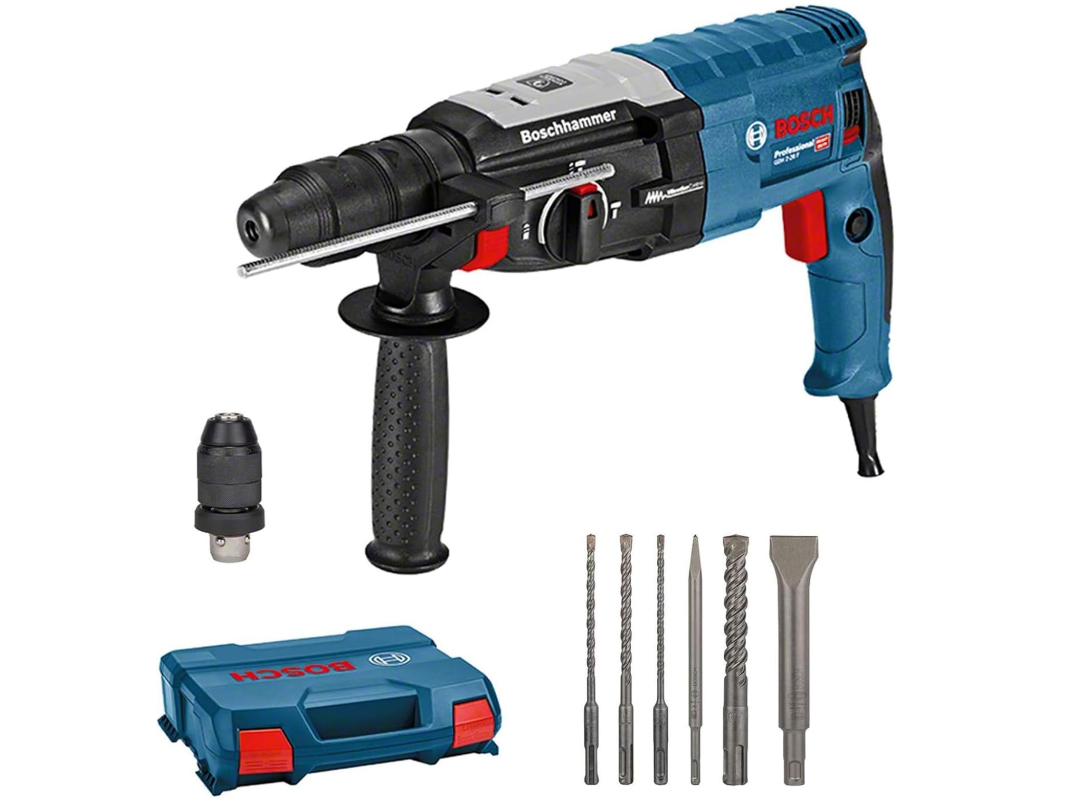 โจ Potencia 880 W, ร mรกx. de perforaciรณn en hormigรณn: 28 mm, incl. set de 6 cinceles, SDS plus, L-Case