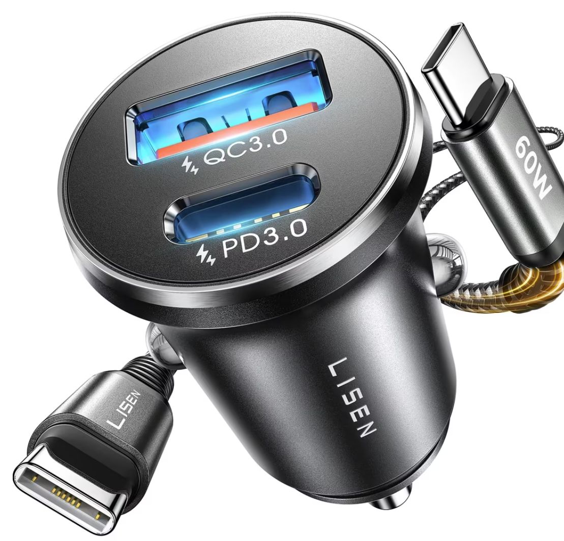 π LISEN Cargador Coche Carga RΓ‘pida Mechero USB C 69W+60W. #Amazon