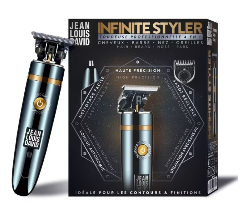 π Jean Louis David - Cortapelos Infinite Styler 4 en 1, cuchillas anchas 37 mm, para cabeza, nariz y orejas, peine ajustable 10 alturas. #Amazon