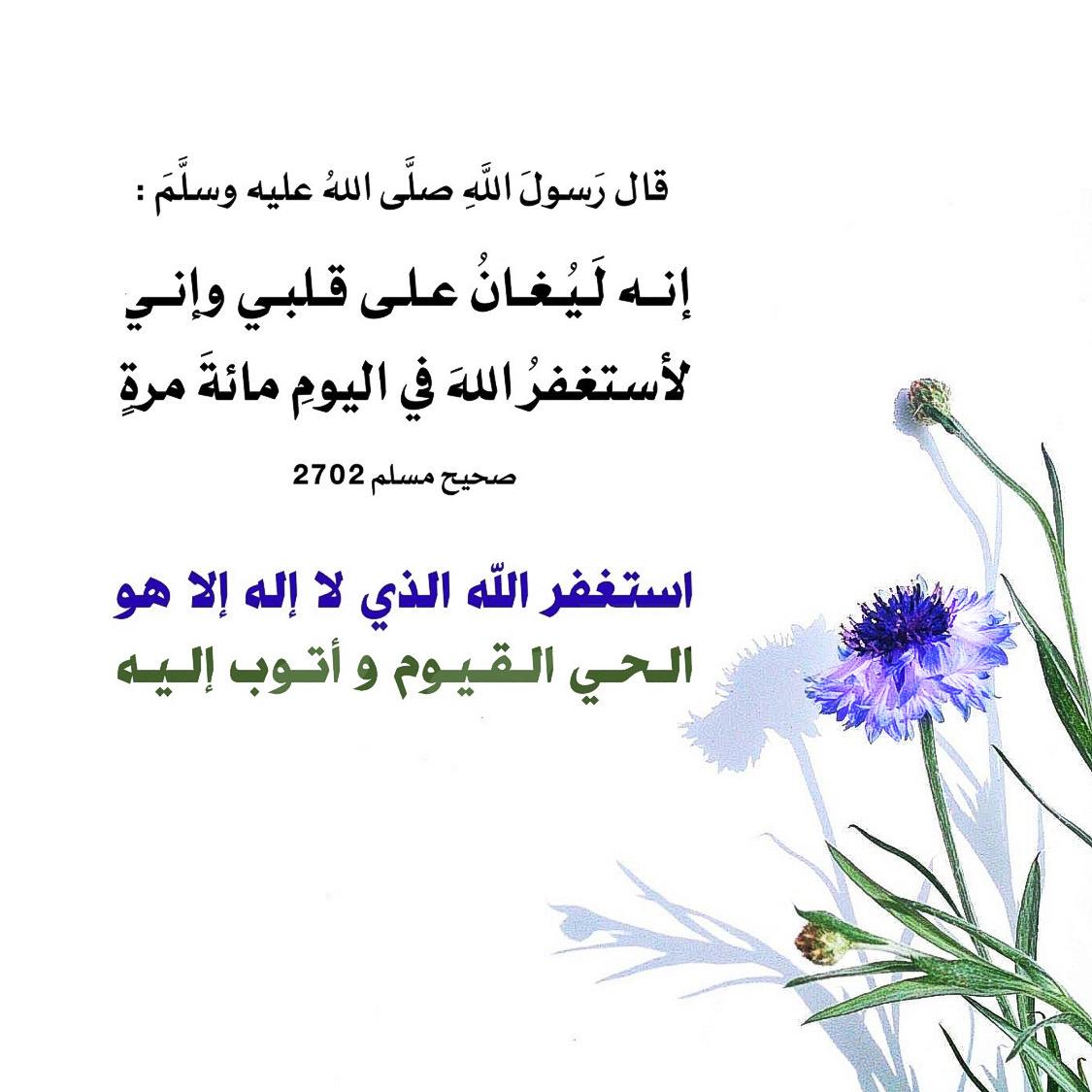 قال النبـي صلى الله عليه وسلم : ( إنه لَيُغانُ على قلبي . وإني لأستغفرُ اللهَ ، في اليومِ ، مائةَ مرةٍ )