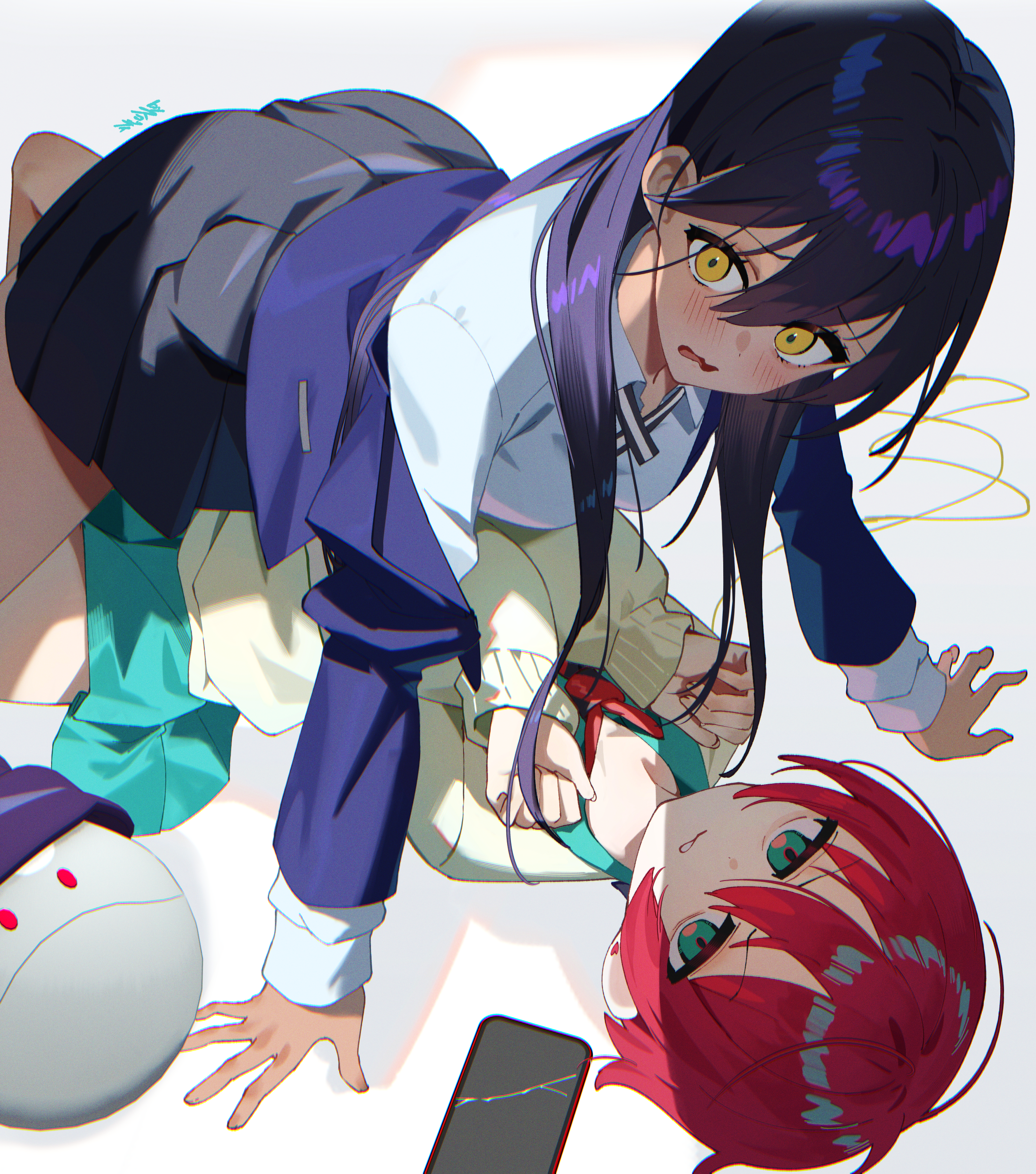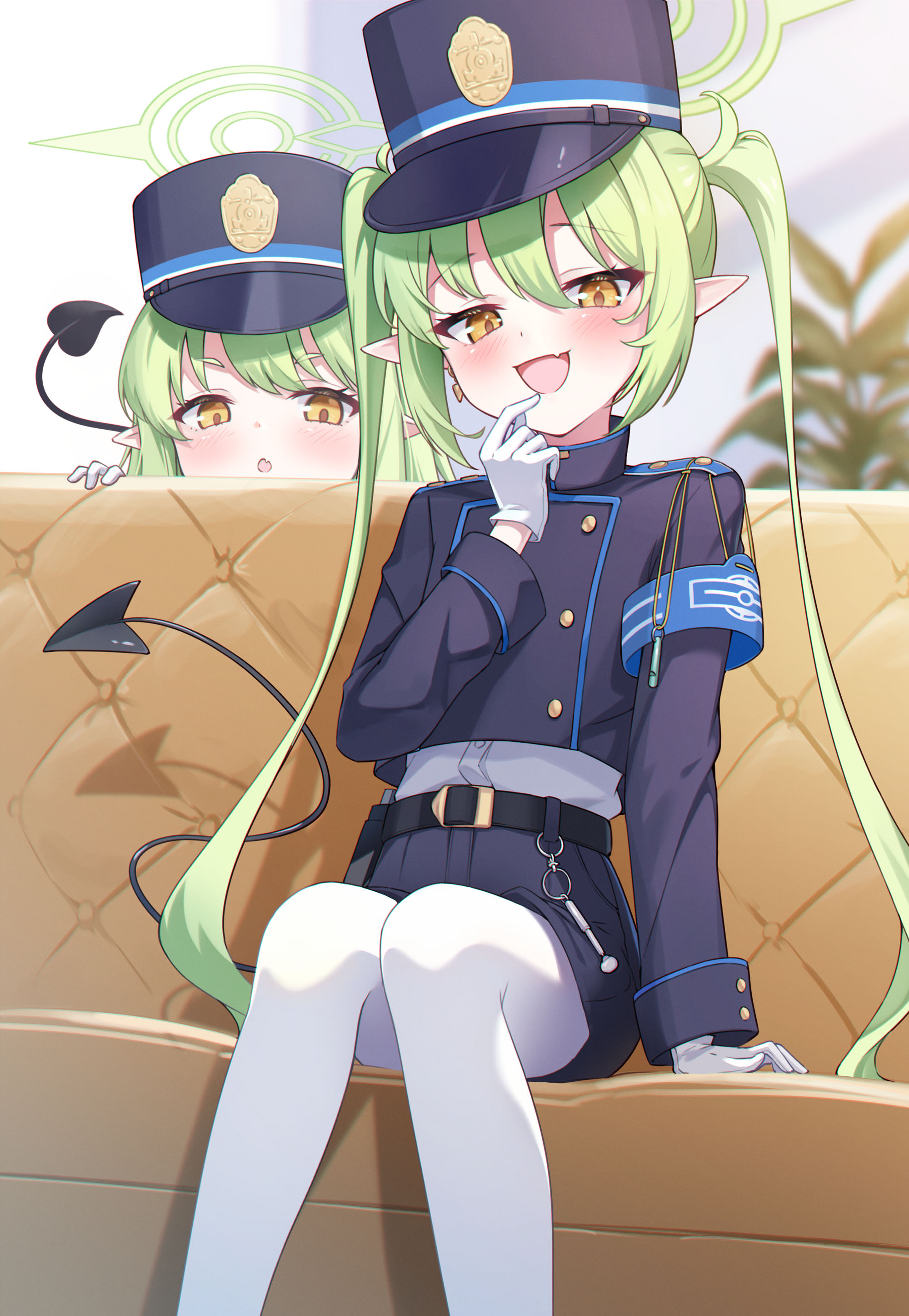 #blue_archive #halo #pantyhose #pointy_ears #shinori_(efvbji6264) #tachibana_hikari #tachibana_nozomi #tail #uniform