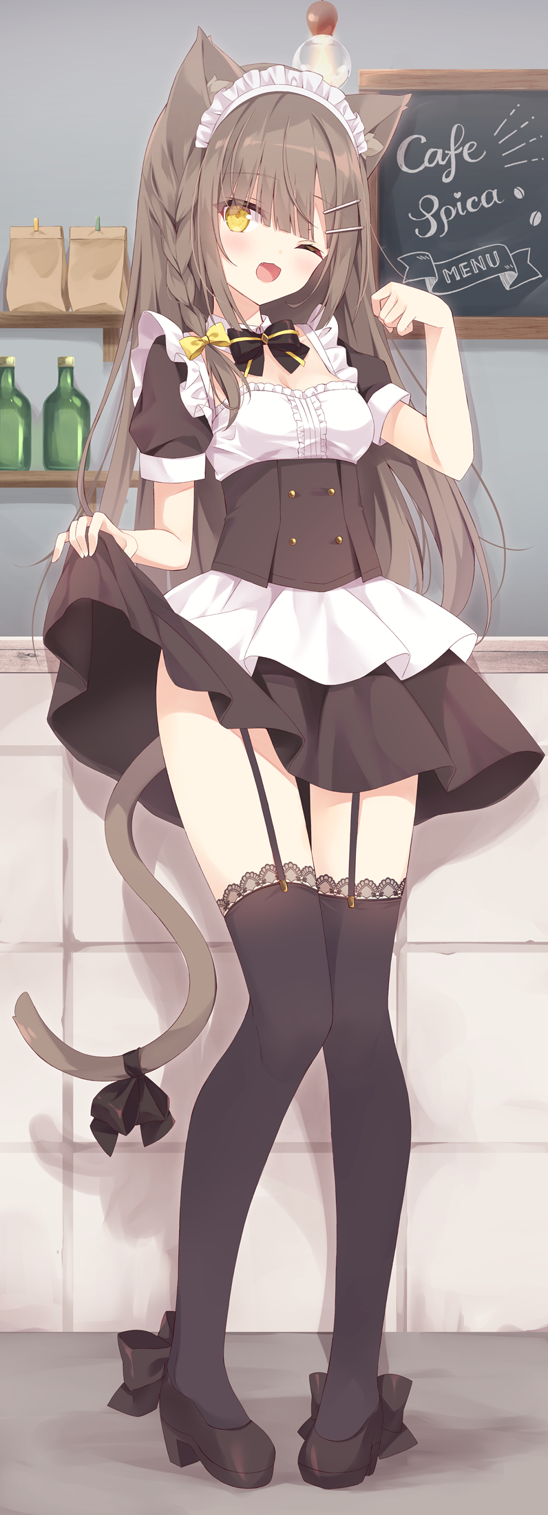 #animal_ears #heels #hoshi #kohaku_(hoshi) #maid #nekomimi #skirt_lift #stockings #tail #thighhighs