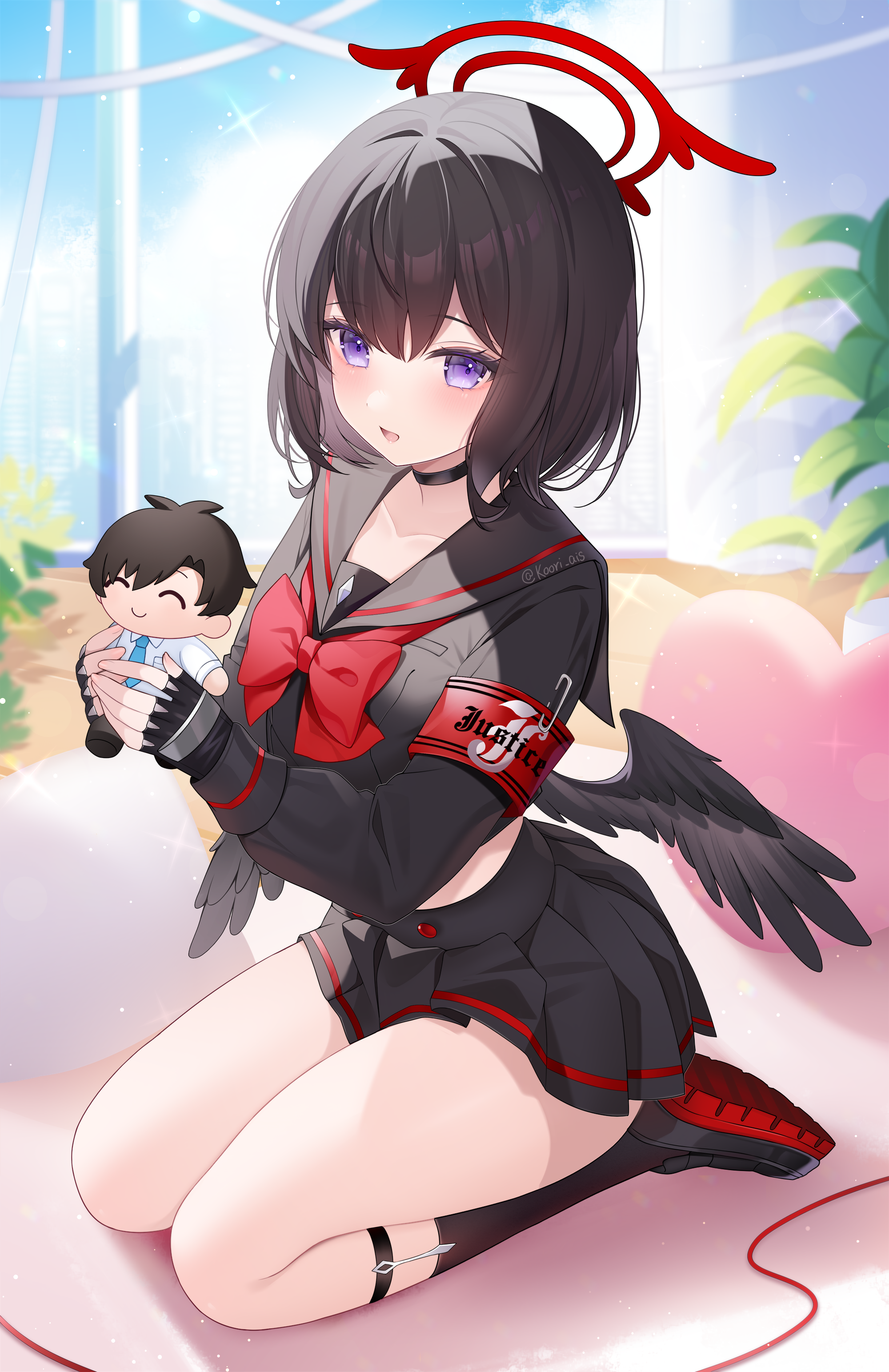 #angel #blue_archive #chibi #ice_(ice) #seifuku #shizuyama_mashiro #wings