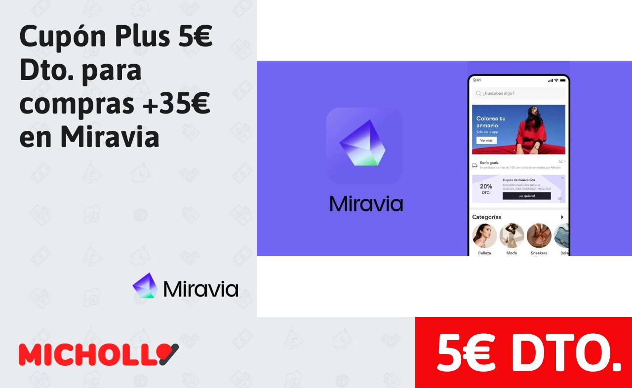 🔹 Cupón Plus 5€ Dto. para compras +35€ en Miravia❗️❤️