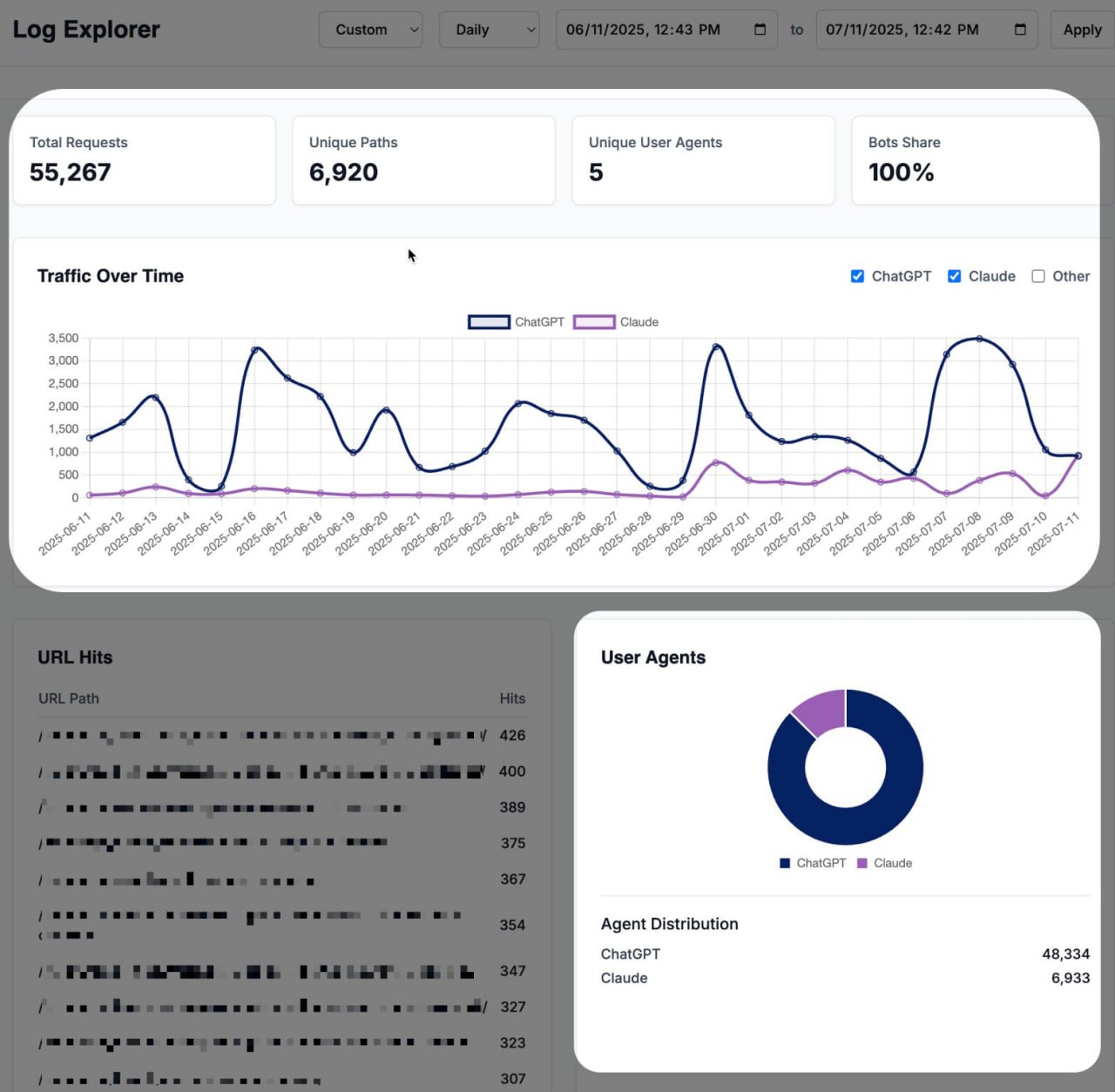 2 Отфильтруйте по юзер-агенту ChatGPT-User (идентификатор OpenAI) или другим юзер-агентам, которые вы хотите проанализировать.