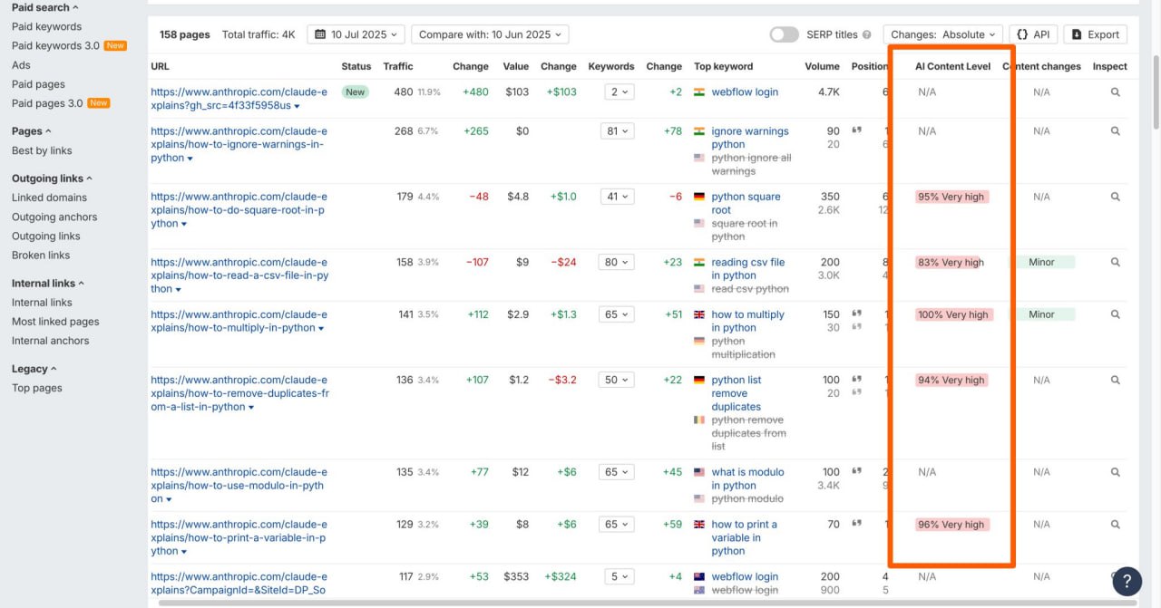 Вы можете проводить n-gram анализ напрямую в AI Mode от Google, чтобы увидеть, какие фразы и темы используются чаще всего, а затем сравнить их с вашим собственным контентом.