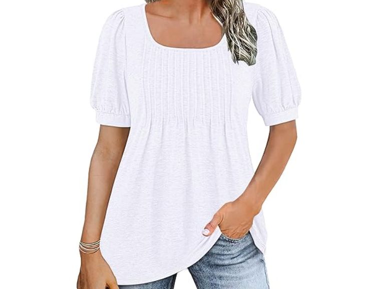 🛒 Wneedu Camiseta Manga Corta Cuello Cuadrado Mujer. #Amazon