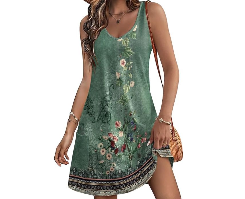 🛒 Hotouch Vestido sin Mangas Cuello en V con Bolsillos Mujer, Talla L a XXL. #Amazon