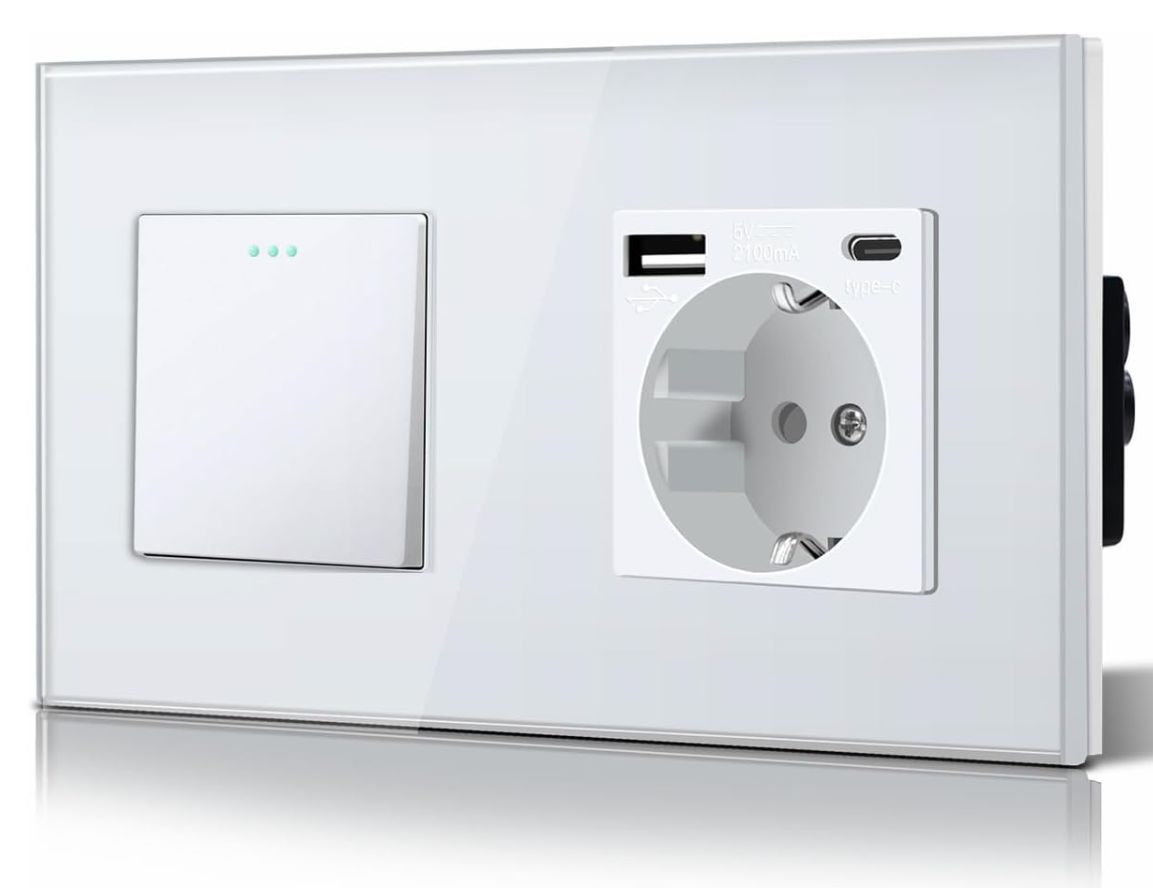 🛒 Bseed Interruptor Conmutador 2 Vías + Enchufe USB-A/USB-C Marco Cristal. #Amazon