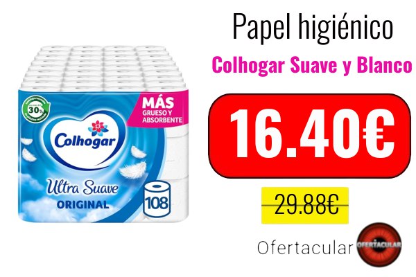 🔴 108 rollos de Papel higiénico Colhogar Suave y Blanco
