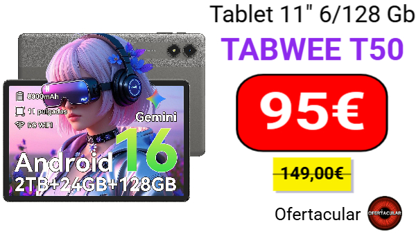 👉 Android 16, 128 GB, Gris, 11 " HD+, 6 GB RAM, Unisoc T615(Octa core), Tablet Android