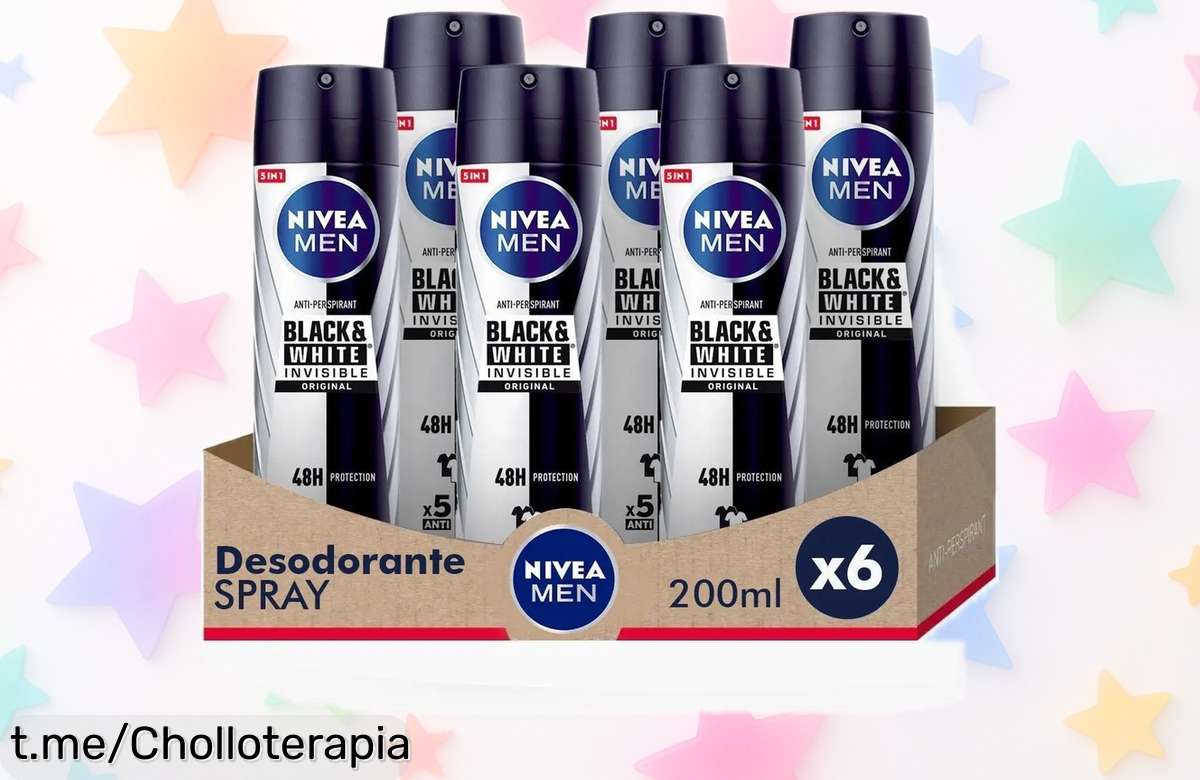 🍀 Pack ahorro desodorante NIVEA MEN Black & White Spray 200ml x 6 unidades con un precio rebajadísimo y nunca visto, que cuida tu piel y evita manchas blancas o amarillas. Date prisa que este super chollo volará, ¡tu frescura al máximo ahora mismo!