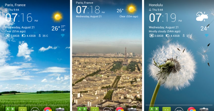 YoWindow - изюминкой, которая заставляет многих людей любить это приложение, является то, что интерфейс постоянно меняется. С раннего утра будут появляться пейзажи восхода солнца, а когда наступит ночь, интерфейс изменится на вечер. Кроме того, зимой со снегом интерфейс также автоматически переключается на снежные изображения.