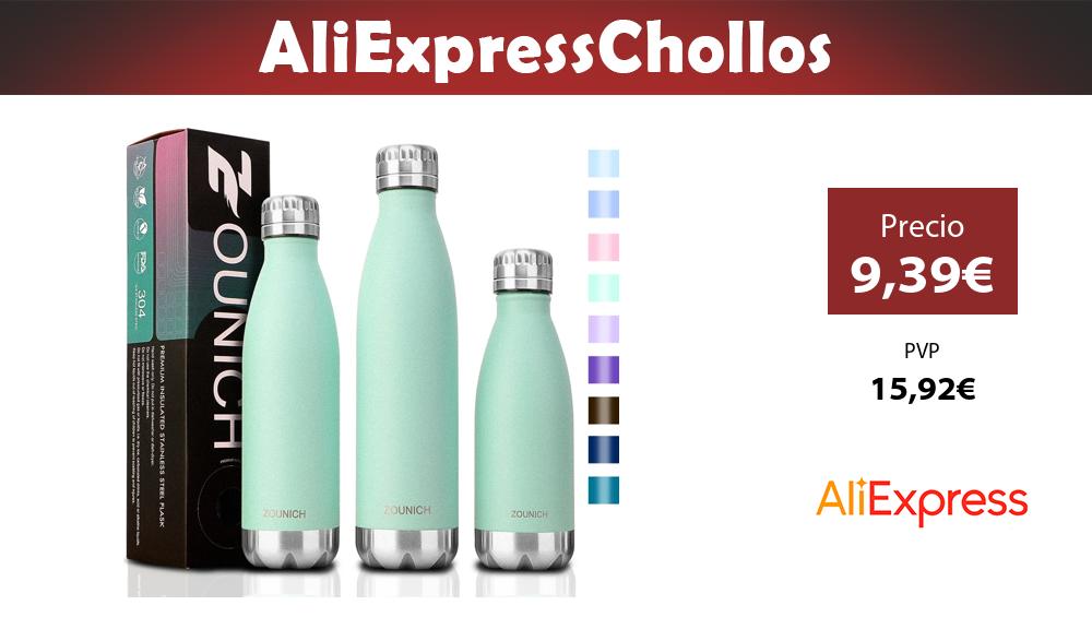 📣 ZOUNICH-botella de agua deportiva de acero inoxidable, termo portátil con aislamiento de doble pared, 500ml