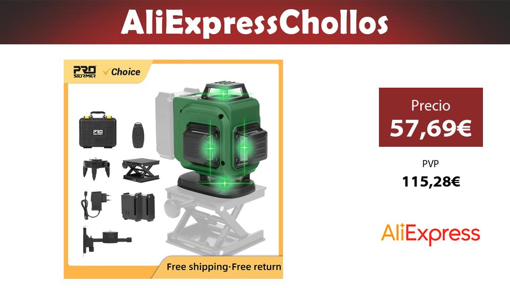 📣 Nivel láser 4D con haz verde de 16 líneas - Modo de inclinación horizontal y vertical Control con un solo toque Batería de iones de litio PROSTORMER