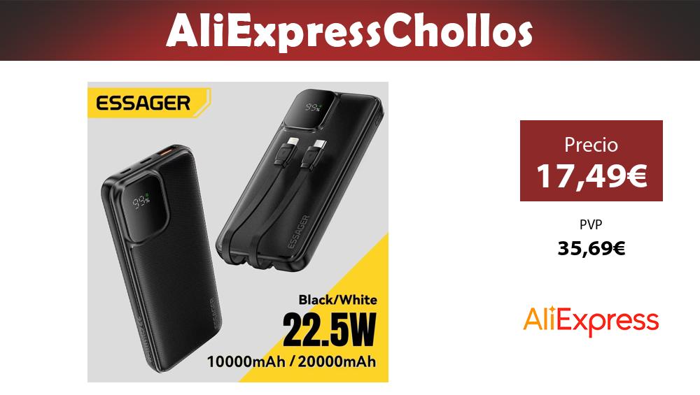 📣 Essager-Banco de energía portátil de 20000mAh con dos Cables integrados, batería externa PD 22,5 W, carga rápida para iPhone16 15 Pro Xiaomi