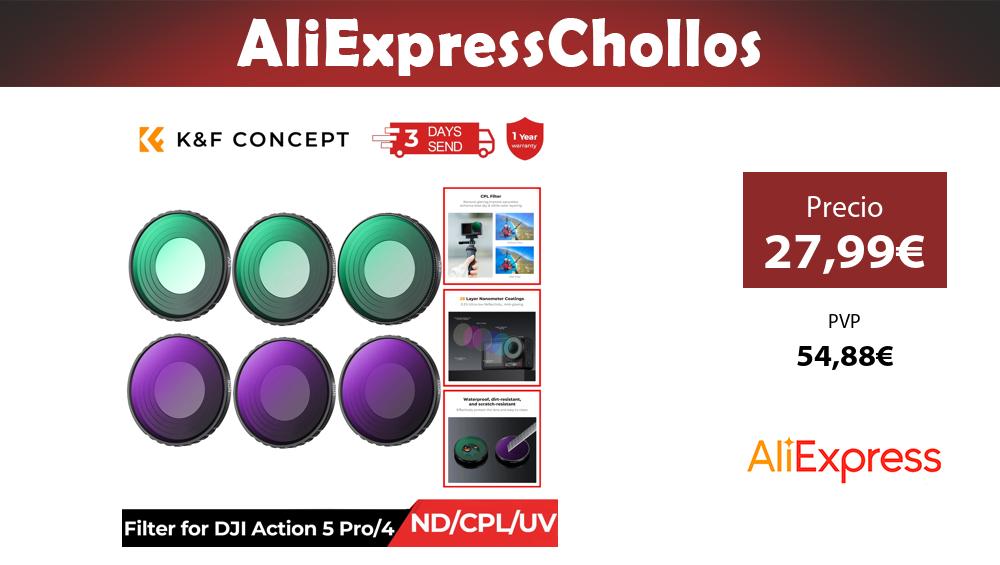 📣 K & F Concept Kit de filtros de Dron para DJI Osmo Action 5 Pro/Action 4 UV CPL ND8 ND16 ND32 ND64 ND256 Black Mist 1/4 Juego de filtros de cámara