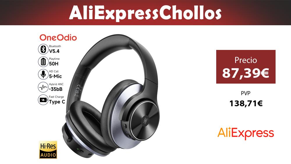 📣 Oneodio auriculares bluetooth 5.4 inalámbricos A10, cascos con híbridos cancelación activa de ruido, audifonos bluetooth inalambrico, Audio de alta resolución hi res, ANC, con micrófono tipo c carga rápida