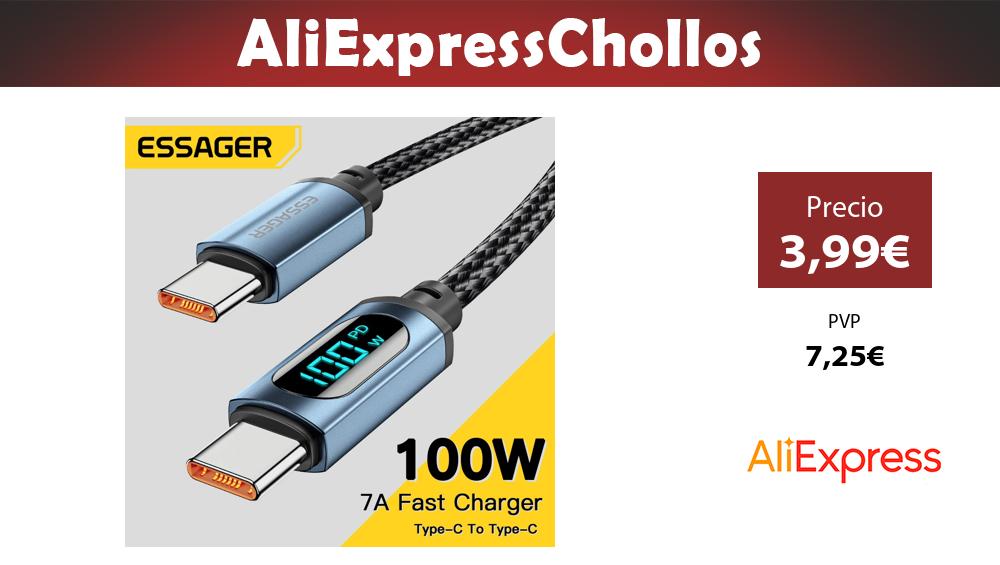 📣 Essager PD 100W Cable USB tipo C a USB C 7A Cable de carga rápida para OPPO Realme Huawei Poco Samsung Cable de pantalla