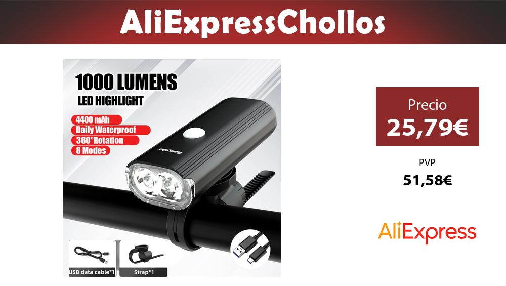 📣 EasyDo-luz delantera de bicicleta, recargable por USB, 1000 lúmenes, linterna Led de alta potencia para accesorios de bicicleta de montaña y carretera
