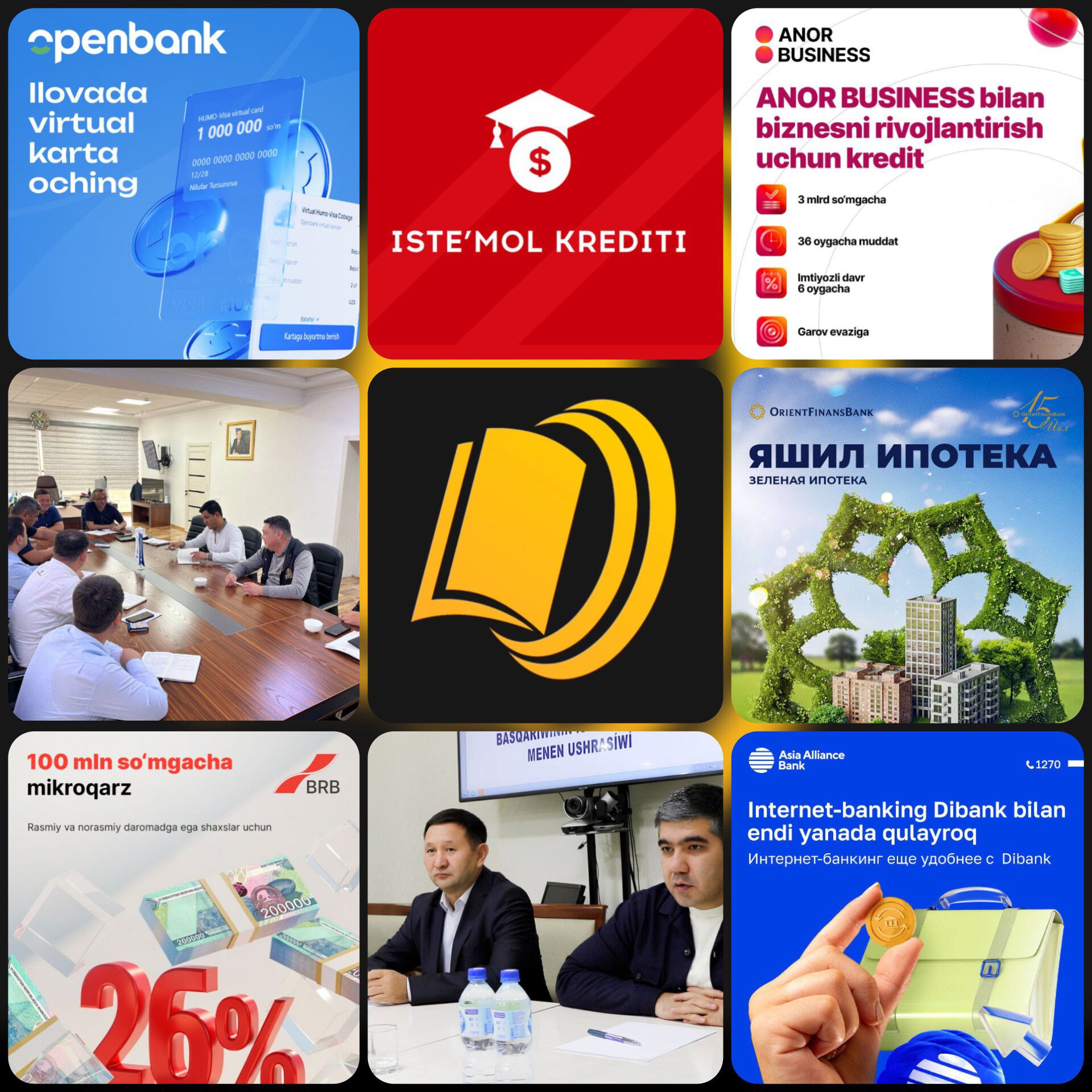 ☑️Қуёш панеллари учун кредитлар шартларини 👉мана бу ерда👈 автокредитлар шартини 👉мана бу ерда👈 эълон қилдик. Микроқарзларни, ипотека кредитлари ва таълим кредитларини ҳам рўйҳатини эълон қилдик.