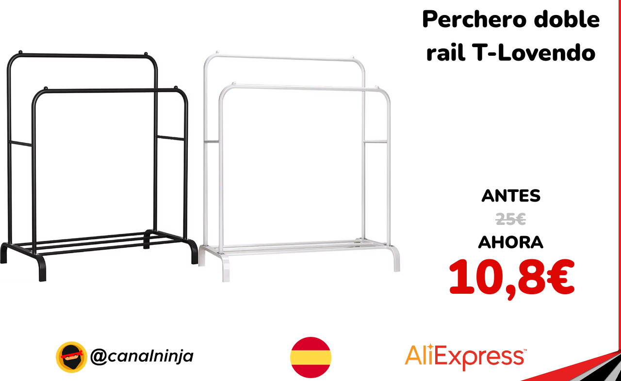 🔹 Perchero doble rail T-Lovendo solo 10,8€ ❗️💥 (PVP: 25€)